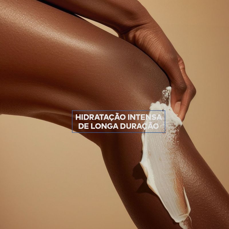 Hidratação intensa vit E + manteiga karité; Hidratação intensa de longa duração; Sem fragrância; Hipoalergênico; Para peles Sensíveis; Pele Extremamente Seca.