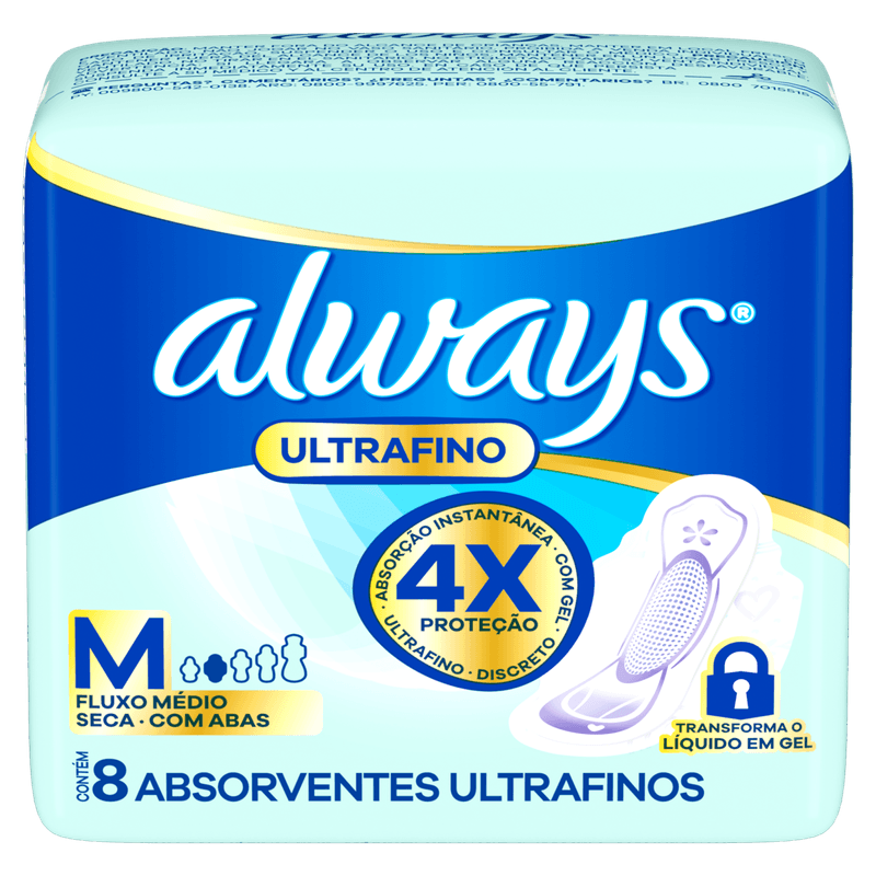 Higiene PessoalHigiene ÍntimaAbsorventes E ProtetoresAbsorvente com Abas Ultrafino Médio Seca Always M - 8 Unidades