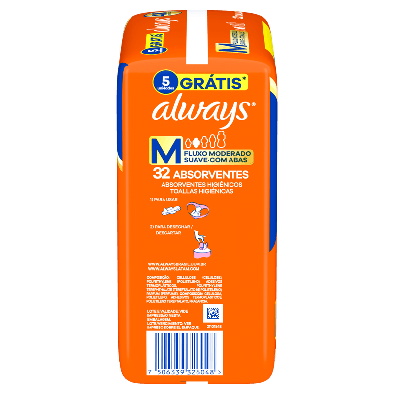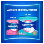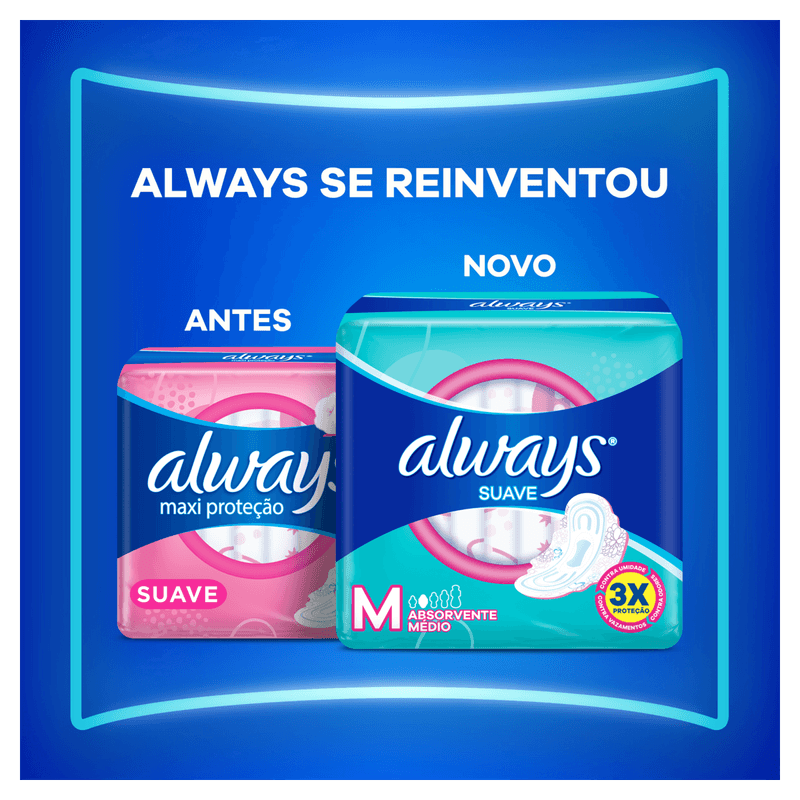 Proteção noturna segura para que você possa dormir sem preocupações a noite inteira. - Barreiras anti vazamento e 100% mais Absorventeorção*. - Mais longo*, com 31cm, para mais cobertura e proteção contra vazamentos. - Mais largo na parte de trás*. - Cobertura que te mantém super seca. (*vs. Always Proteção Total Active)