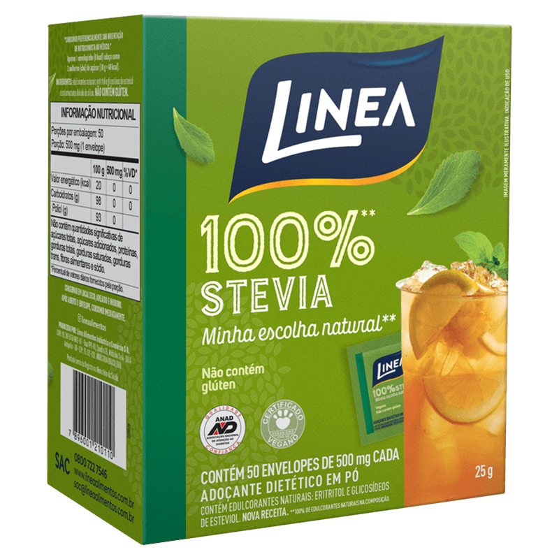 O Adoçante Linea Stevia em pó, apresentado em sachês de 6g, é um produto da categoria conveniência indicado para substituir o açúcar de forma natural e saudável, ideal para dietas com restrição calórica e para quem busca adoçar bebidas e alimentos sem adicionar calorias.