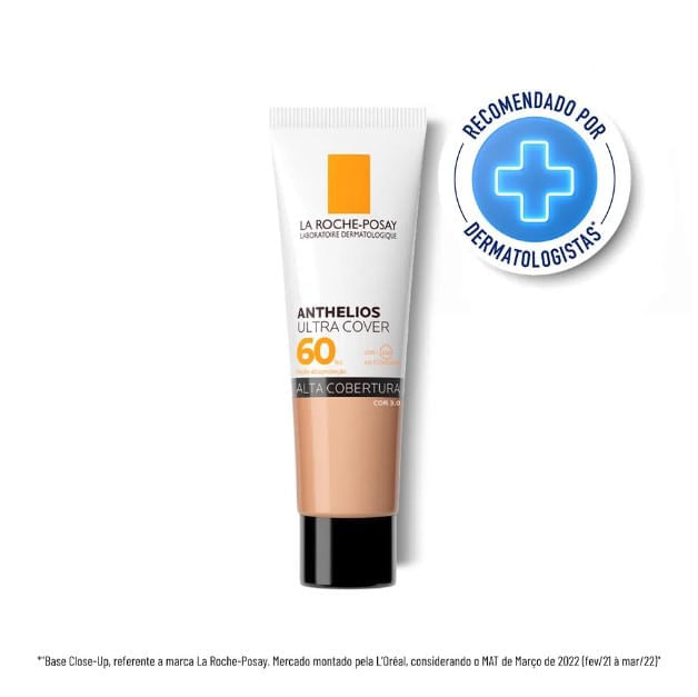 O Protetor Solar Facial La Roche-Posay Anthelios Ultra Cover Cor Clara 3.0 FPS 60 é um protetor solar em creme com alta proteção contra raios UVA, UVB e luz visível, que também oferece efeito base com cobertura uniforme e acabamento natural. Indicado para todos os tipos de pele, proporciona até 12 horas de proteção e cobertura sem craquelar ou pesar.