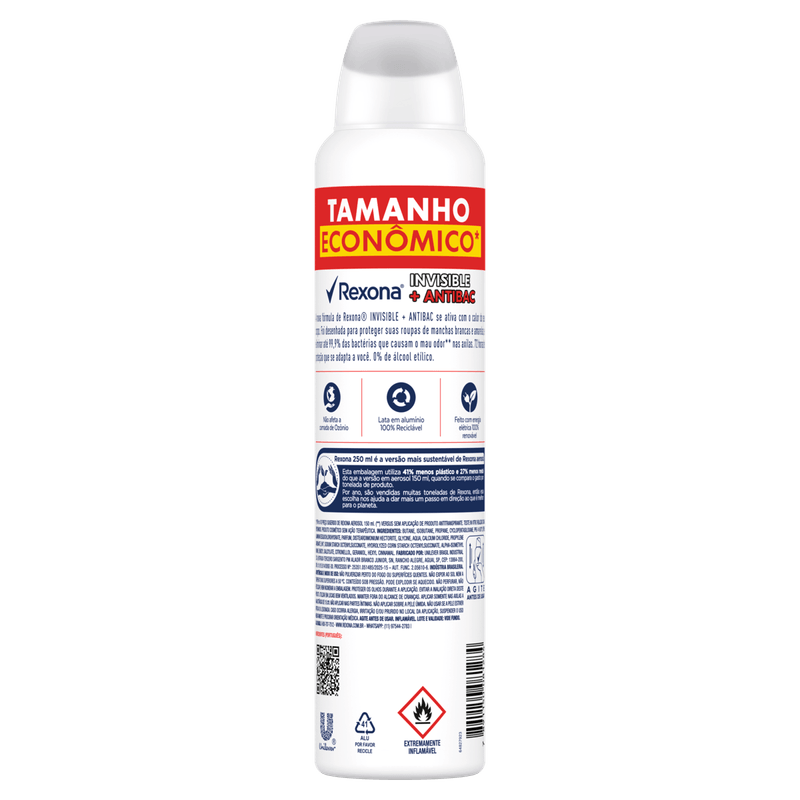 Antitranspirante Aerossol Antibacterial e Invisible Rexona 250ml Spray Leve Mais Pague Menos