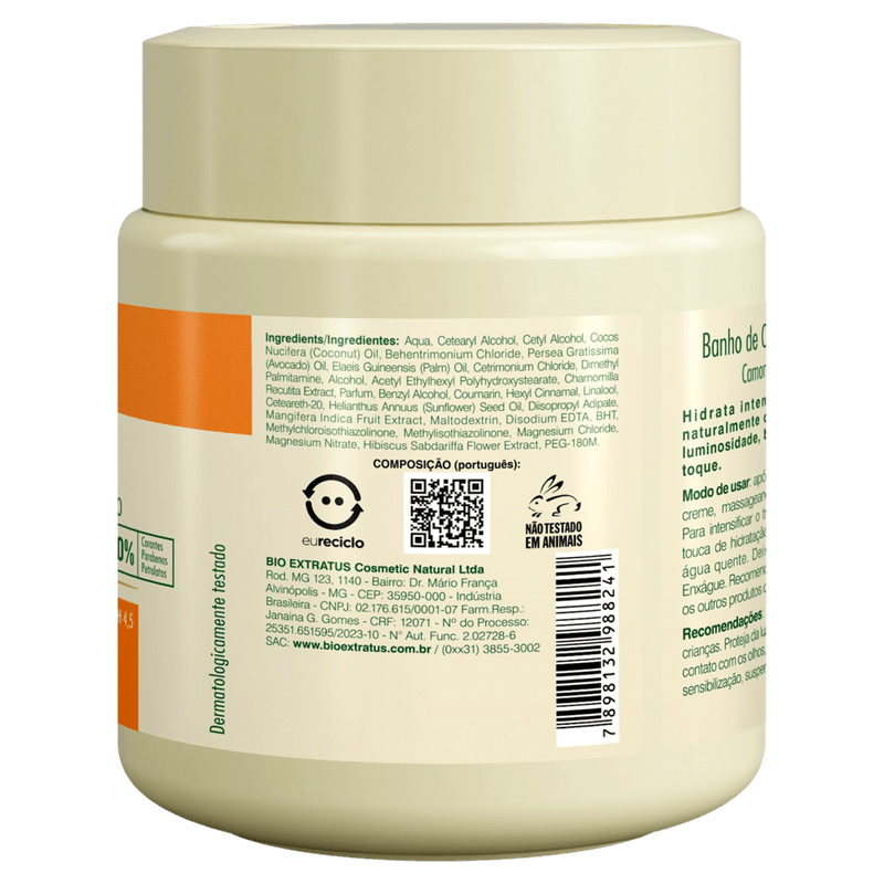 O Banho de Creme Iluminador Bio Extratus é ideal para hidratar intensamente, clarear naturalmente e realçar a luminosidade dos fios loiros. Com camomila e girassol, proporciona brilho, suavidade ao toque e cuidado profundo para cabelos naturais, coloridos ou com mechas. Sua fórmula vegana, sem parabenos e dermatologicamente testada, garante tratamento eficaz e consciente.