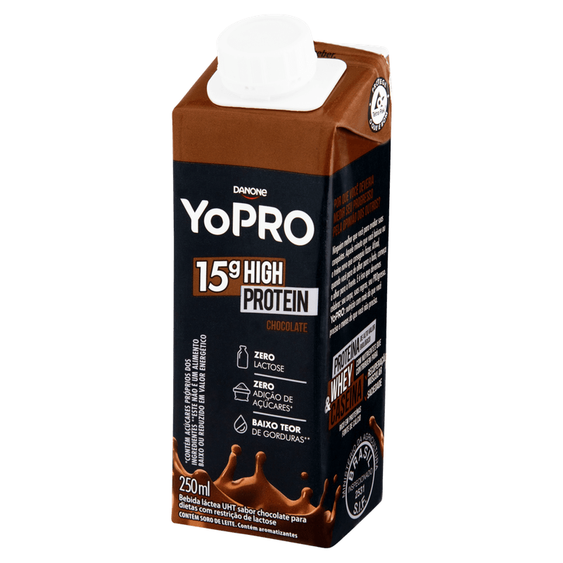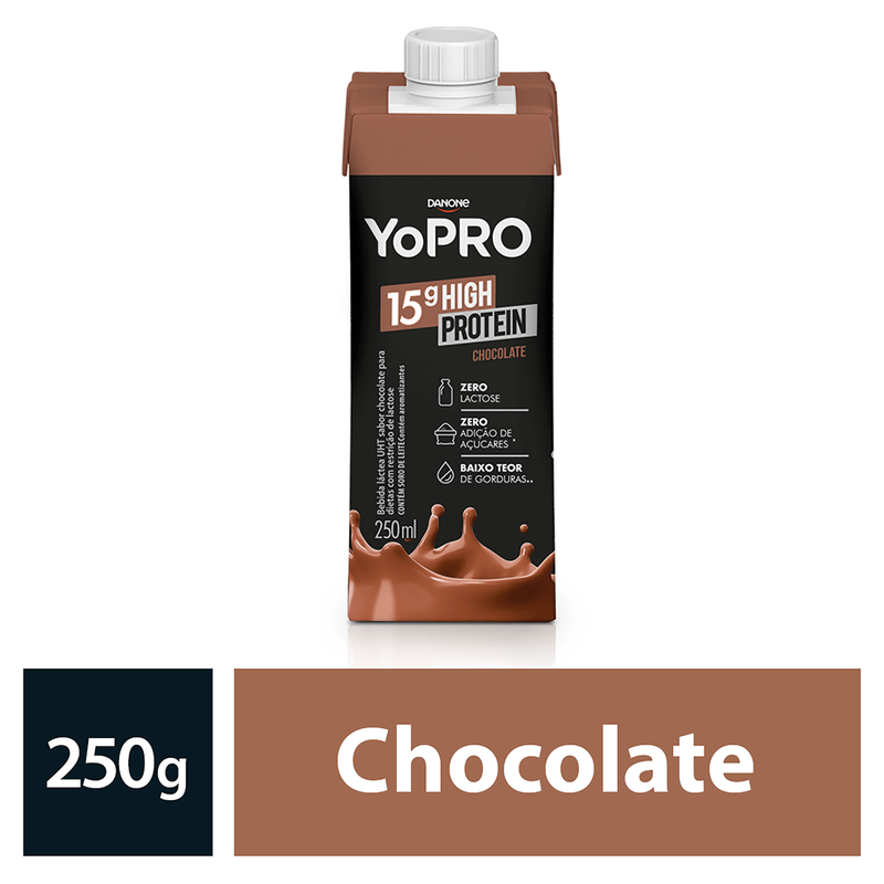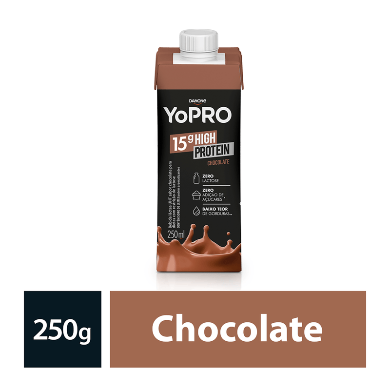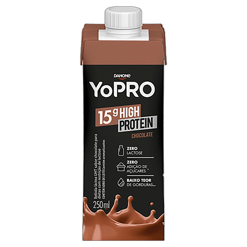 O YoPRO Chocolate é uma bebida láctea UHT em embalagem tetrapak de 250ml, indicada para suplementação e complementação proteica, especialmente para recuperação muscular após exercícios intensos.