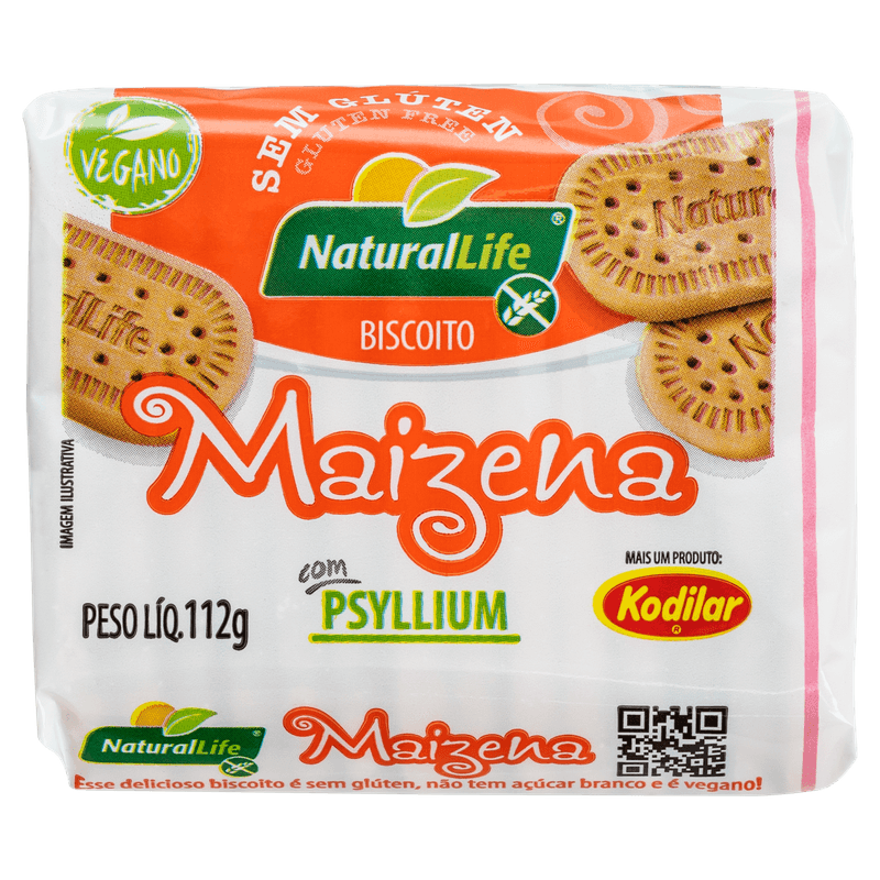 Biscoito Maizena com Psyllium Vegano sem Glúten Natural Life Pacote 112g