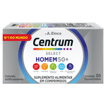 Centrum Select Homem 50+ apresenta-se em comprimidos sem sabor, com embalagem contendo 30 unidades, suficiente para um mês de uso. Sua fórmula atua diretamente na saúde do homem maduro, promovendo suporte nutricional adequado para essa faixa etária. O suplemento é indicado para uso oral, sem necessidade de prescrição médica, e não é recomendado para gestantes. Este produto não substitui uma alimentação equilibrada e seu consumo deve ser orientado por profissional de saúde.
