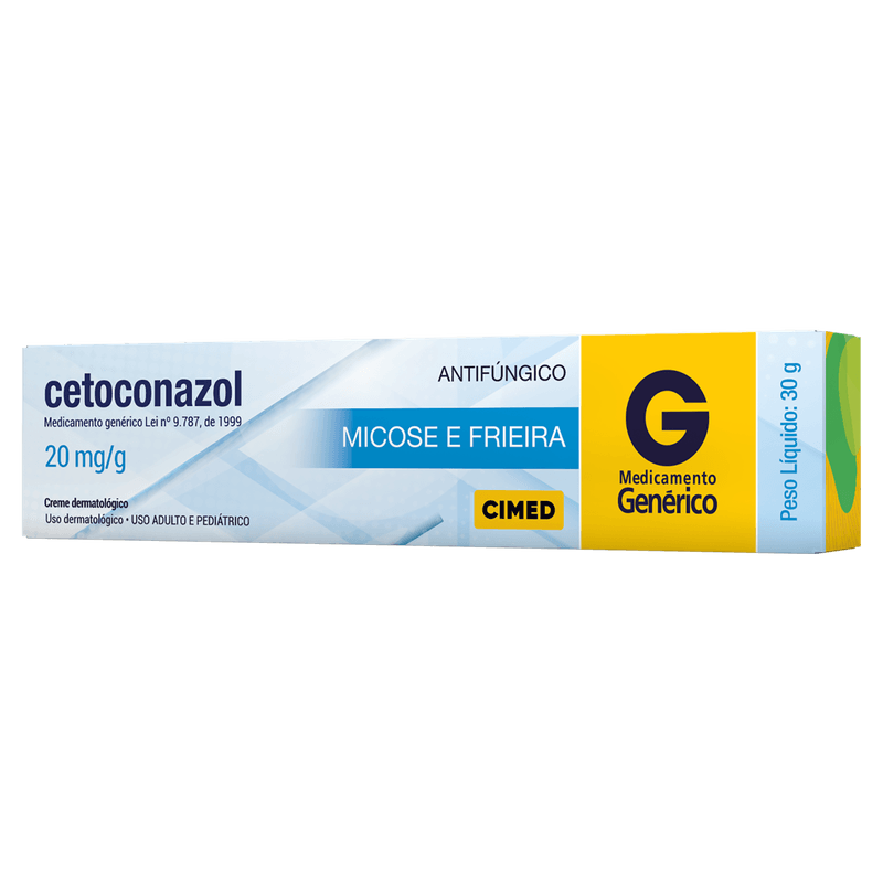 Este creme dermatológico apresenta textura leve e é de uso tópico, com embalagem de 30g. Sua composição inclui cetoconazol 20mg/g e excipientes que garantem boa absorção e ação local. Produto de venda livre, sem necessidade de receita médica, deve ser armazenado em local fresco e seco, longe da luz direta. Uso externo. Manter fora do alcance de crianças.