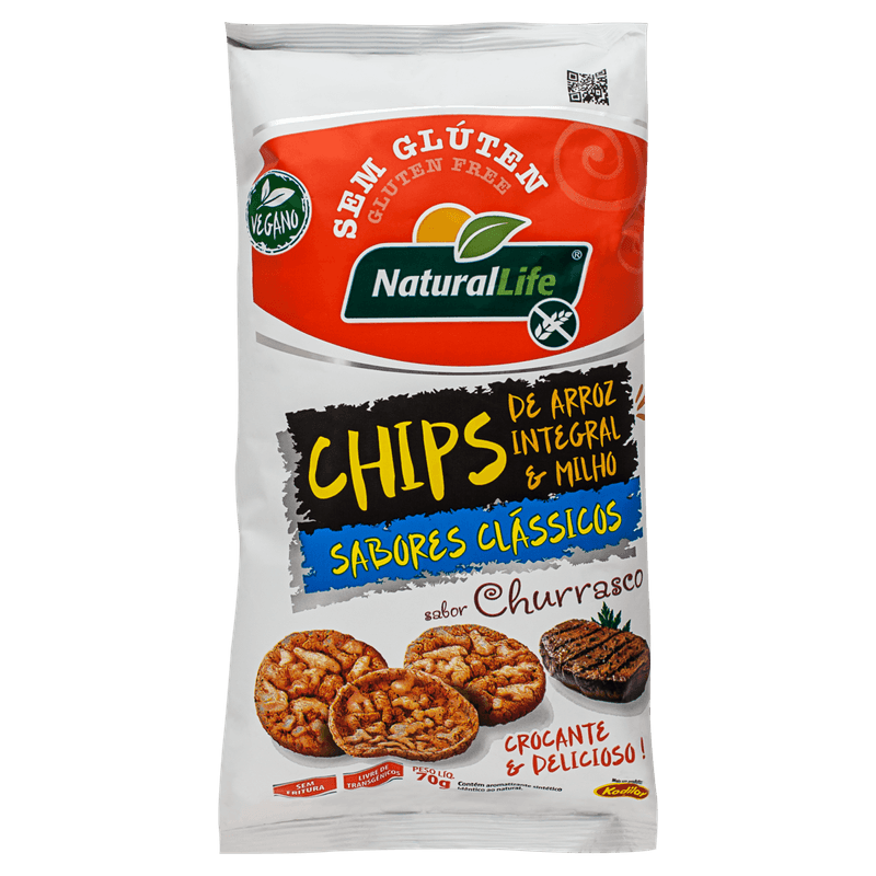 Chips de Milho e Arroz Integral de Churrasco sem Glúten Natural Life Sabores Clássicos Pacote 70g