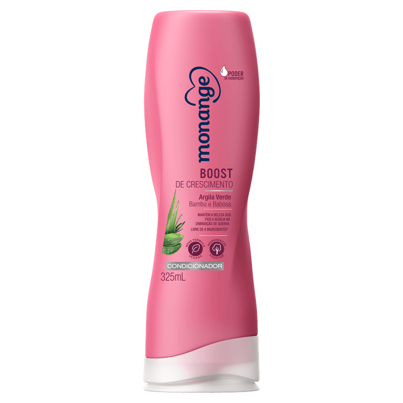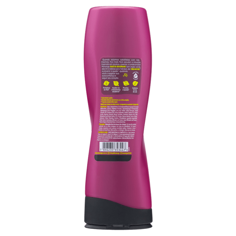 Nova Linha Capiular Monange, nutre seus cabelos com ingredientes poderosos. Condicionador Boost de Crescimento, nutre a raiz para um crescimento saudável. Quando estamos satisfeitas com nós mesmas, fica mais fácil escutar a intuição. Inspirado em receitas caseiras, o condicionador Monange BOOST DE CRESCIMENTO tem argila verde, alecrim e babosa para hidratar, dar FORçA AOS FIOS1 e prevenir a queda2, ajudando você a resgatar sua autoconfiança e seguir seu coração. Embalgens Modernas e Chamativas