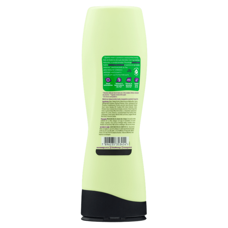 Nova Linha Capilar Monange, nutre seus cabelos com ingredientes poderosos. Condicionador Detoxterapia, ação antipoluição e ativo antioxidante. Quanto maior a pureza e o autoconhecimento, mais verdadeiras são suas decisões. Com ingredientes naturais, o condicionador Monange DETOX TERAPIA nutre, EQUILIBRA A OLEOSIDADE e suaviza as agressões externas*, desintoxicando os fios para restaurar a beleza e estimular você a ouvir o coração em sua forma mais pura. Embalgens Modernas e Chamativas