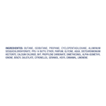 Composição: Butane/isobutane/propane, Aluminum Chlorohydrate, Cyclomethicone, Ppg-14 Butyl Ether, Parfum, Disteardimonium Hectorite, Caprylic/capric Triglyceride, Hydrated Silica, Gelatin Crosspolymer, Aqua, Cellulose Gum, Sodium Benzoate, Pvm/ma Copolymer, Sodium Starch Octenylsuccinate, Maltodextrin, Hydrolyzed Corn Starch, Silica, Dimethiconol, Bambusa Vulgaris Extract, Alpha-isomethyl Ionone, Benzyl Salicylate, Butylphenyl Methylpropional, Cinnamyl Alcohol, Citronellol, Coumarin, Geraniol, Hexyl Cinnamal, Limonene, Linalool.