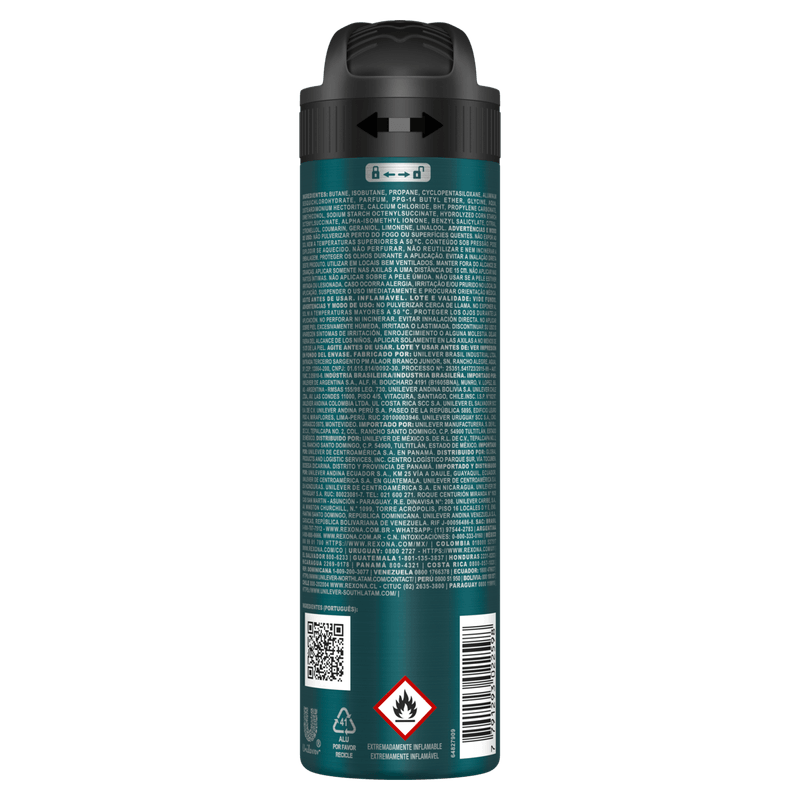 Sem álcool etílico e sem corantes, o Desodorante Antitranspirante Aerosol Rexona Active Dry garante 72 horas de proteção seca e intensiva contra o suor. Sua fórmula conta com Tecnologia MotionSense, composta por exclusivas microcápsulas que são quebradas pelo atrito dos movimentos, liberando proteção extra ao longo do dia, proporcionando sensação de frescor, conforto e segurança a cada novo movimento e por muito mais tempo.