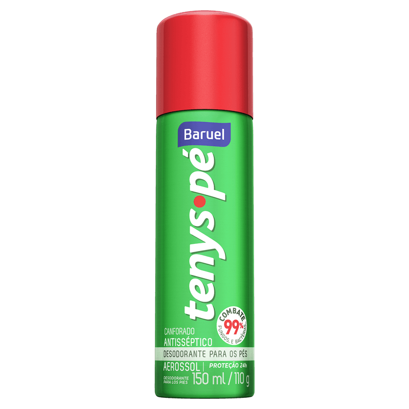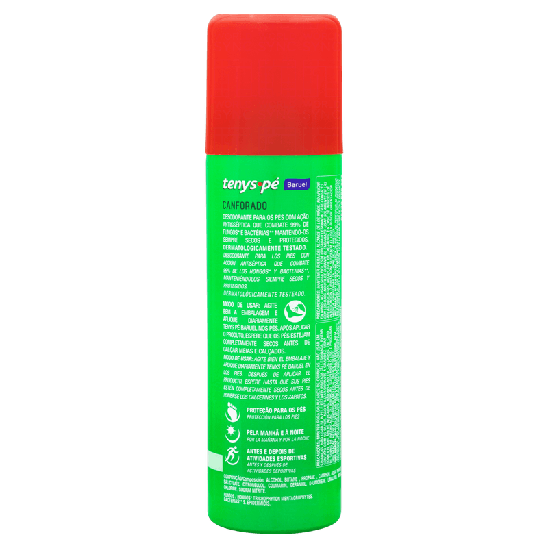 Desodorante Aerossol para os Pés Antisséptico Canforado Baruel Tenys Pé Frasco 150ml Spray