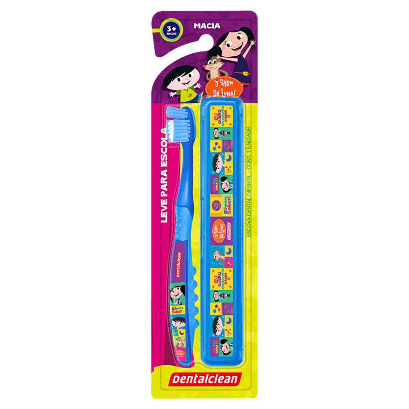 A Escova Dental Infantil Luna Macia Dentalclean é indicada para crianças a partir de 3 anos, apresentada com cabo emborrachado e estojo personalizado para transporte. Desenvolvida para a higiene bucal infantil, oferece conforto e proteção durante a escovação, com cerdas macias, arredondadas e polidas, adequadas para dentes e gengivas delicadas.