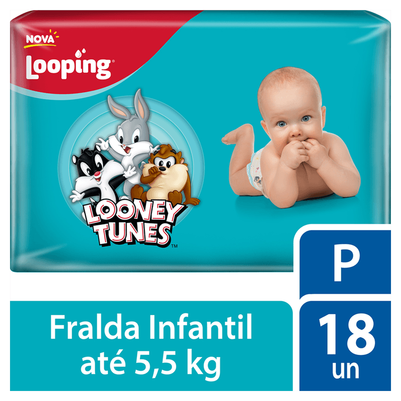 InfantilFralda InfantilRegularLooney Tunes Fralda Calça P Respirável, Cintura Elástica, 10h - Looping Jumbo 18un