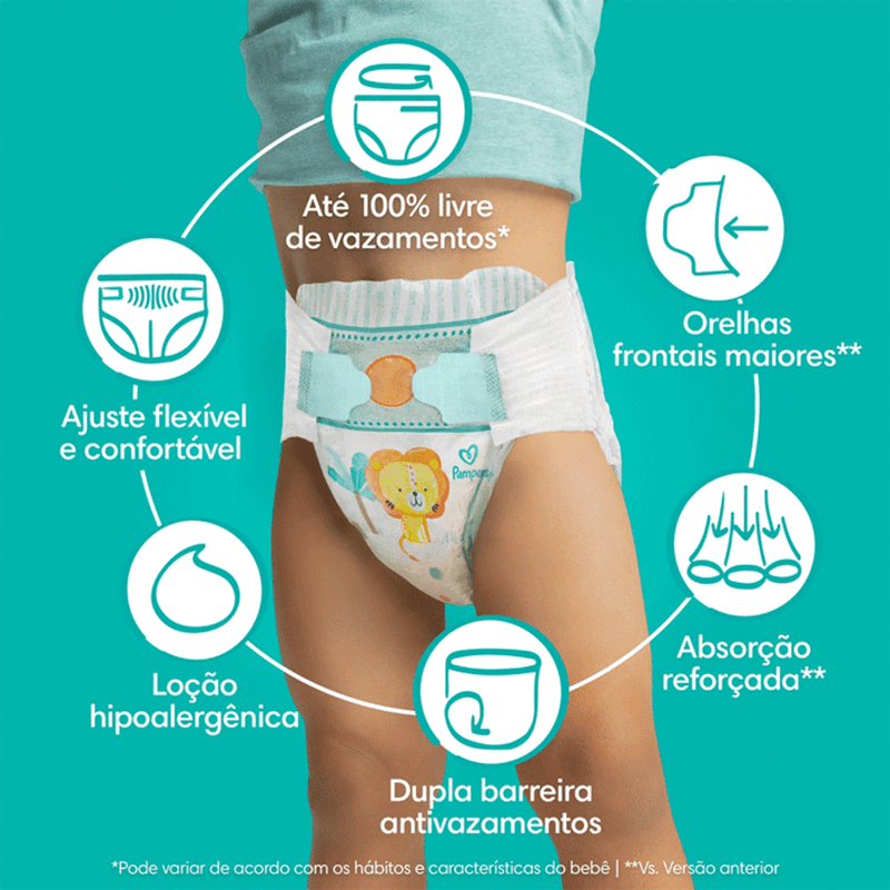 Siga sempre as recomendações do fabricante quanto à frequência de troca e descarte adequado. Em caso de dúvidas, irritações ou reações adversas, consulte um pediatra para orientação adequada. Produto destinado exclusivamente à higiene infantil.