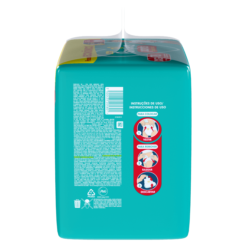 Siga sempre as recomendações do fabricante quanto à frequência de troca e descarte adequado. Em caso de dúvidas, irritações ou reações adversas, consulte um pediatra para orientação adequada. Mantenha a embalagem plástica fora do alcance das crianças e evite exposição ao fogo devido ao risco de incêndio.