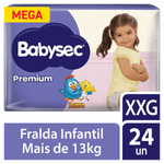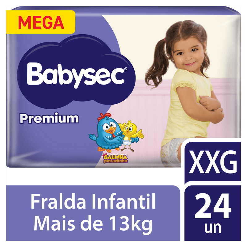 Com formato normal e cobertura suave, a fralda Babysec Premium é respirável e indicada para uso diário, garantindo segurança e conforto durante o dia e a noite. A embalagem contém 24 unidades, ideal para famílias que buscam praticidade e qualidade em fraldas descartáveis para bebês maiores.