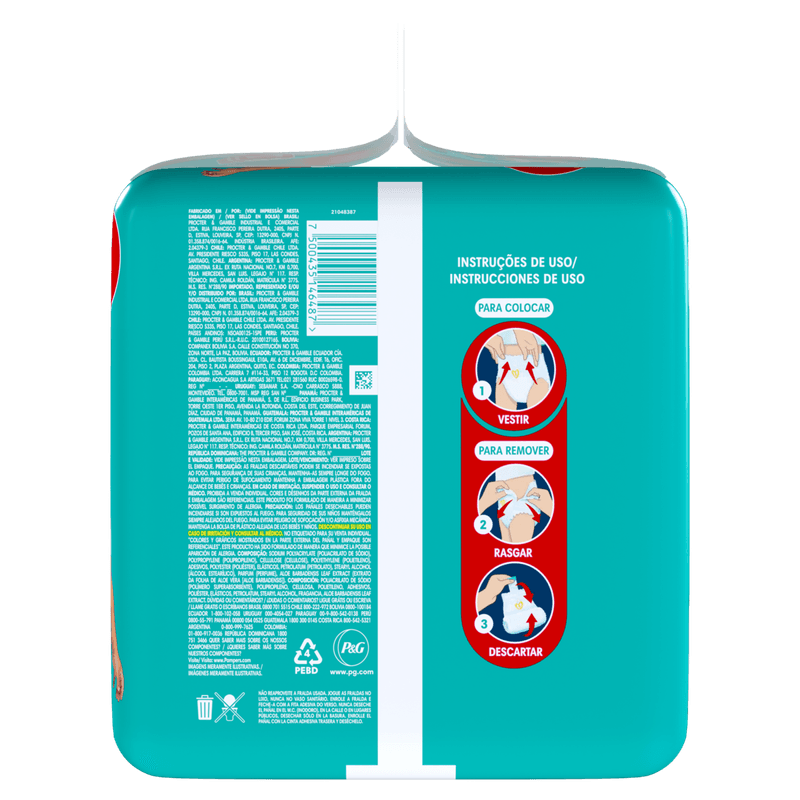 Com textura ultra suave e material descartável respirável, a Pampers Pants Ajuste Total é ideal para uso diurno e noturno, oferecendo alta absorção e sistema anti-vazamento eficiente. Sua composição inclui tecido respirável, gel superabsorvente e cintura elástica 360°, garantindo proteção e conforto para peles sensíveis. Produto indicado para bebês de 9 a 13 kg, com apresentação em calça descartável, volume de 72 unidades e classificação segura para uso infantil.
