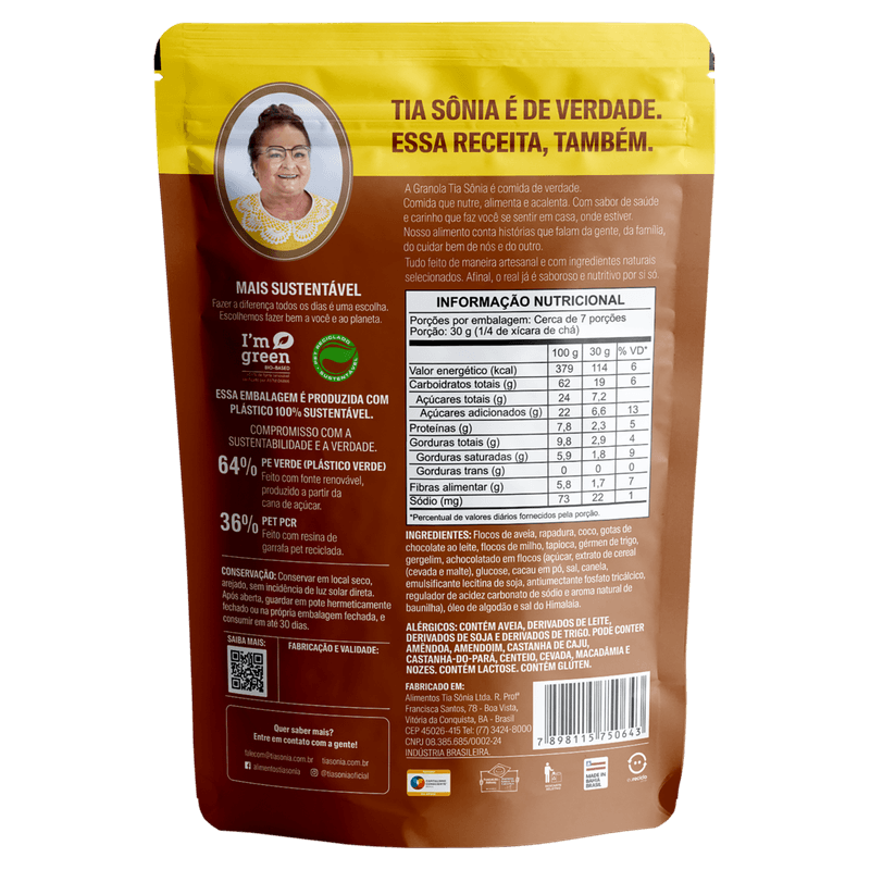 Delicie-se com a combinação perfeita de crocância e sabor! A Granola Chocolate Tia Sônia é feita com ingredientes selecionados, como flocos de aveia, castanhas e pedaços de chocolate, garantindo energia e prazer em cada colherada. Ideal para acompanhar frutas, iogurtes ou para ser consumida pura como um snack saudável. Fonte de fibras e com sabor irresistível, é a escolha certa para quem busca equilíbrio entre nutrição e sabor.