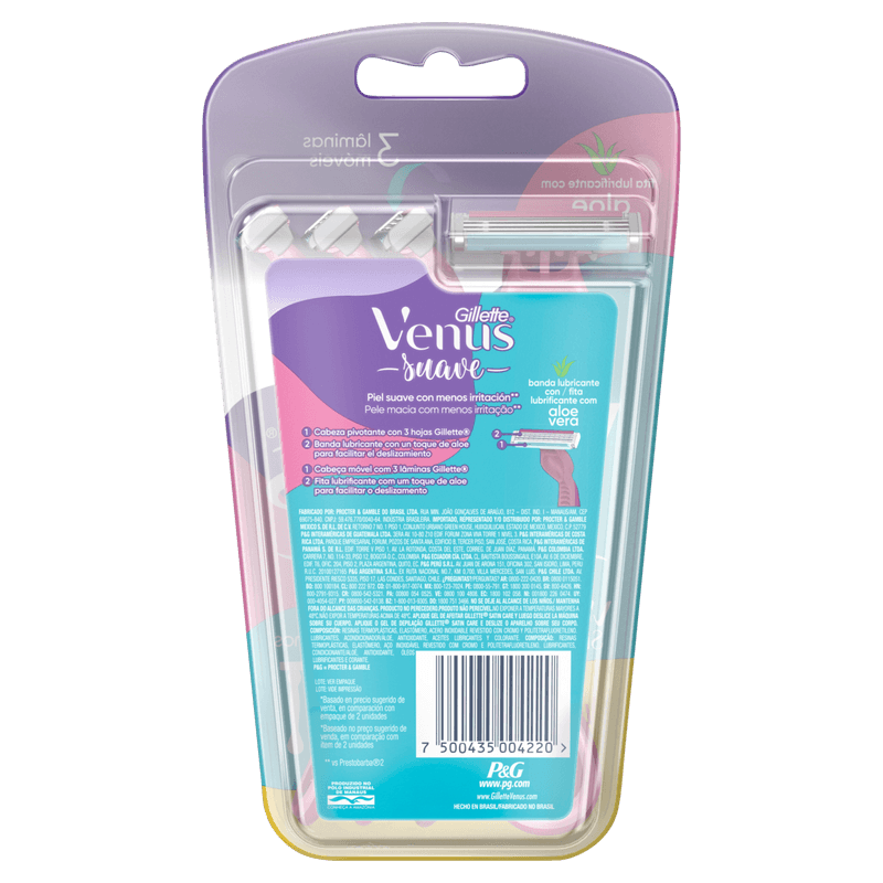 Procurando uma depilação rente e com menos irritação*? Os aparelhos descartáveis Simply Venus oferecem uma depilação rente com preço acessível. Estes aparelhos possuem uma cabeça móvel com três lâminas e um cabo confortável para um deslizamento fácil e uma depilação mais rente. *vs. aparelho descartável de 2 lâminas.