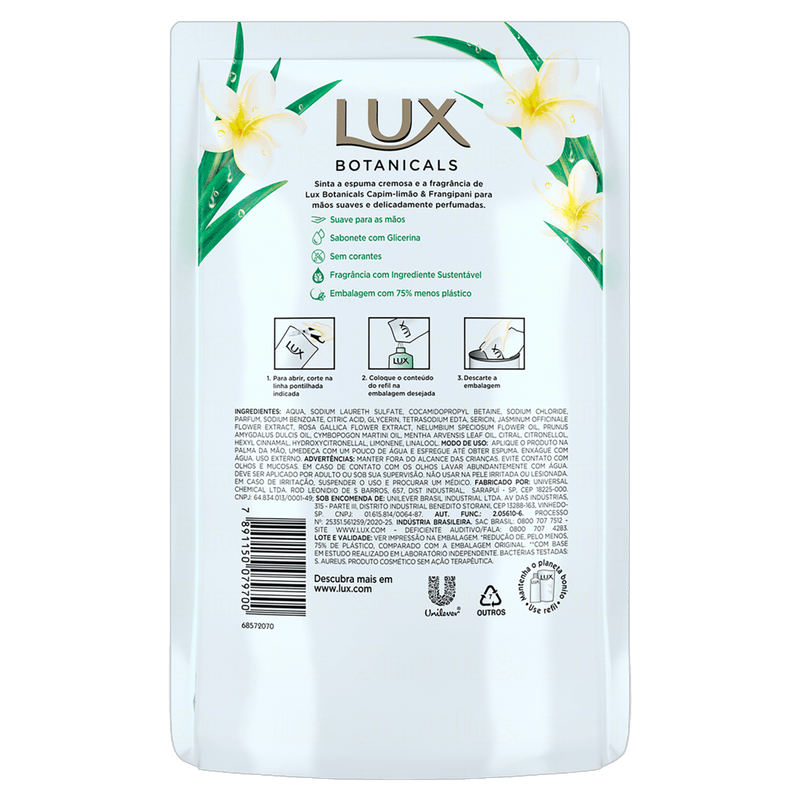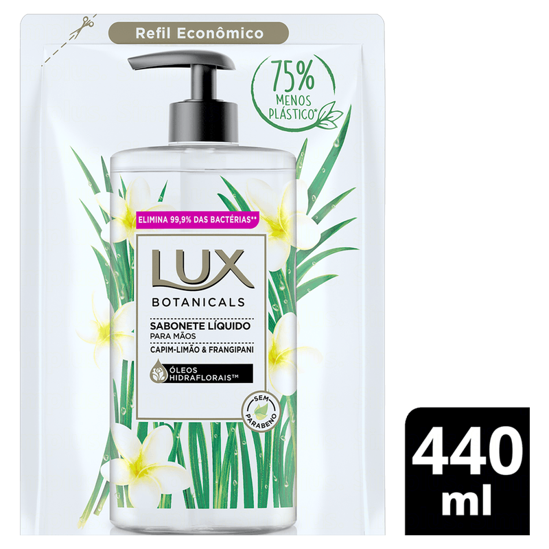 Sabonete Líquido para as Mãos Capim-Limão & Frangipani Lux Botanicals Sachê 440ml Refil Econômico
