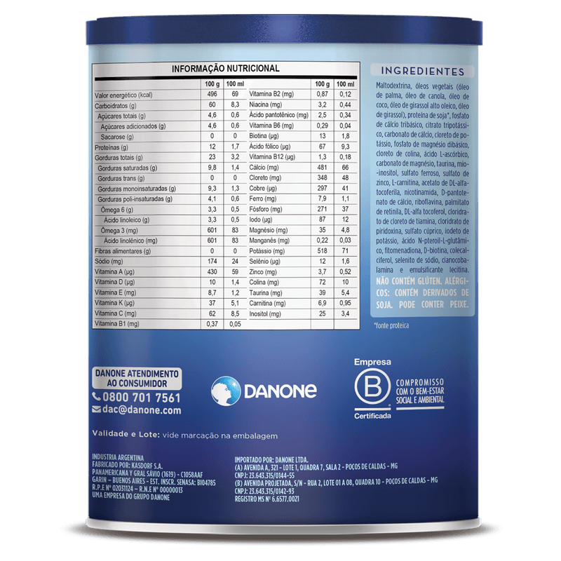 A fórmula atua diretamente na complementação alimentar de lactentes com intolerância à lactose, fornecendo proteínas de soja, carboidratos, gorduras, vitaminas e minerais essenciais para o desenvolvimento infantil. Apresentada em lata de 800g, possui textura em pó para preparo conforme orientação. É indicada para crianças com pele e sistema digestivo sensíveis à lactose, garantindo uma alimentação segura e adequada. A embalagem moderna destaca a ausência de proteínas lácteas e reforça a importância do uso responsável.