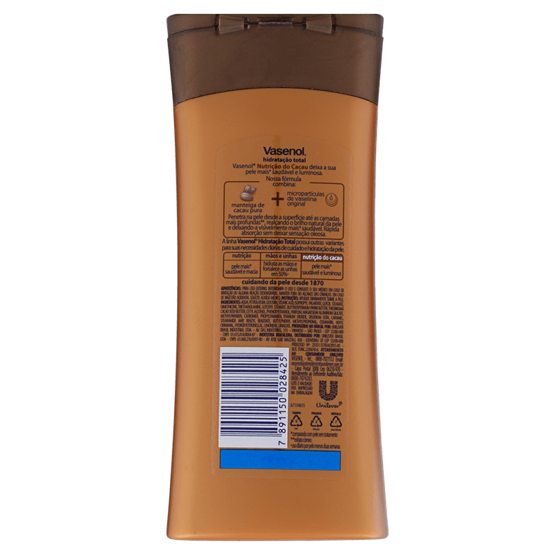 Loção Desodorante Hidratação Total Nutrição do Cacau Vasenol Frasco 200ml