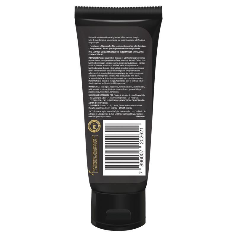 Skyn® Naturally Endless é um lubrificante íntimo premium de longa duração, desenvolvido com 99% de ingredientes de origem natural e tecnologia patenteada à base d’água. Sua fórmula inovadora proporciona lubrificação prolongada, hidratação e conforto, ajudando a reduzir o atrito e potencializar o prazer durante as relações. É suave ao toque, não pegajoso, não mancha e se dissolve facilmente em água. Dermatologicamente e ginecologicamente testado, é indicado para uso vaginal, peniano e anal, complementando a lubrificação natural do corpo. Compatível com preservativos de látex e poliisopreno, favorece uma experiência mais natural, confortável e segura.