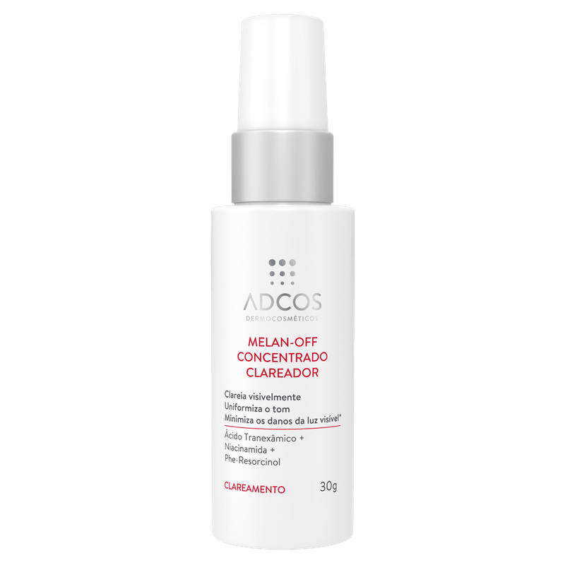 O Sérum Clareador Melan-Off Adcos é indicado para quem busca prevenir e tratar hiperpigmentação, melasma e manchas de acne, uniformizando o tom da pele com alta eficácia. Sua fórmula concentrada combina ativos modernos que atuam em todas as etapas da pigmentação, além de proteger contra a luz visível, responsável pelo agravamento das manchas.