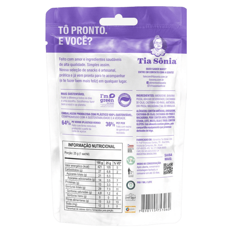 Mix de Castanhas 25g, produzido com castanhas selecionadas e deliciosas frutas desidratadas, além de ser fonte de nutrientes que são essenciais para a saúde. Um mix completo com amendoin, castanha de caju, banana, macadâmia, castanha-do-pará, uva-passa, abacaxi e amêndoa.