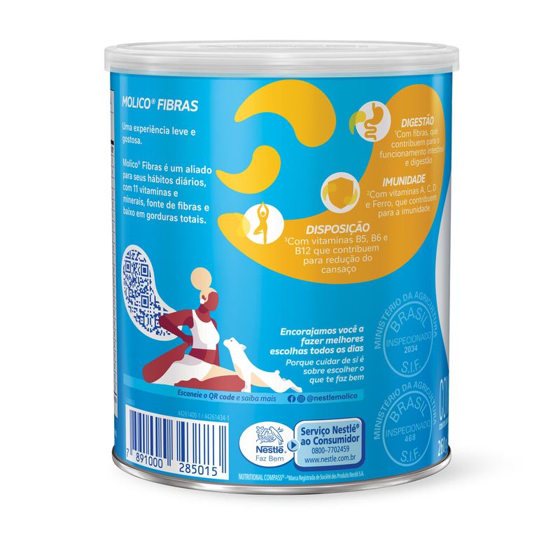 O Molico Fibras é um composto lácteo em lata de 260g, indicado para adultos que buscam complementar a alimentação com fibras e nutrientes essenciais para o equilíbrio do corpo.
