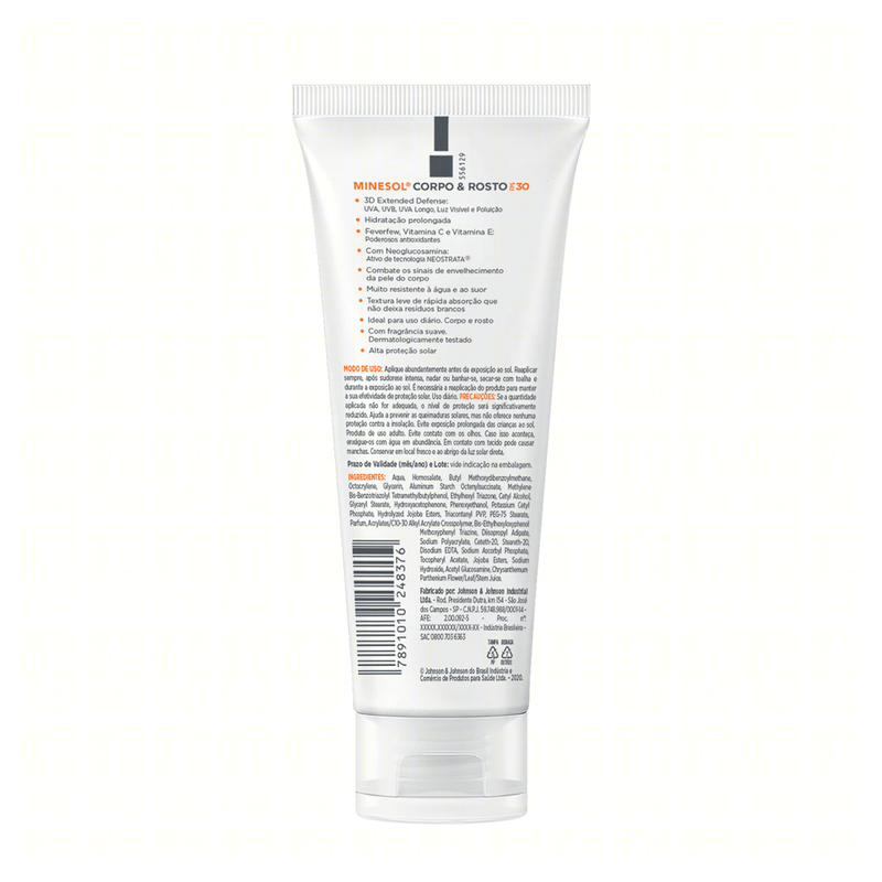 O Protetor Solar Corpo e Rosto FPS 30 Neostrata Minesol é um fluido hidratante indicado para todos os tipos de pele, inclusive as sensíveis. Apresenta textura leve, de rápida absorção, sem deixar resíduos brancos, e oferece proteção contra raios UVA, UVB, luz visível, além de resistir à água e ao suor por até 80 minutos.