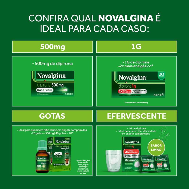 Novalgina 500 mg é indicada para o alívio de dores leves a moderadas e para a redução da febre em adultos e adolescentes acima de 15 anos.