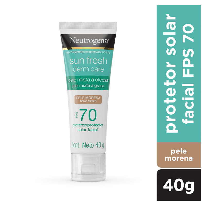 O Protetor Solar Facial Neutrogena Derm Care Pele Morena FPS 70 é um protetor solar em creme indicado para peles mistas a oleosas, oferecendo alta proteção contra os raios UVA, UVB e luz visível. Sua principal finalidade é proteger a pele, uniformizar o tom e controlar a oleosidade com efeito matte de longa duração.