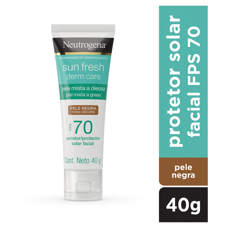 O Protetor Solar Facial Neutrogena Derm Care Pele Negra FPS 70 é um protetor solar em creme indicado para peles mistas a oleosas, oferecendo alta proteção contra os raios UVA, UVB e luz visível. Sua principal finalidade é proteger a pele, uniformizar o tom e controlar a oleosidade, proporcionando efeito matte de longa duração.