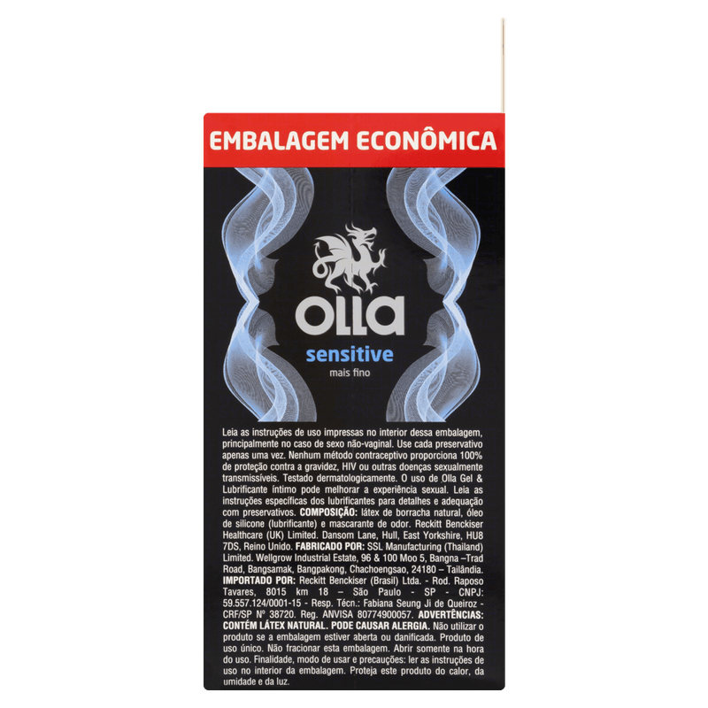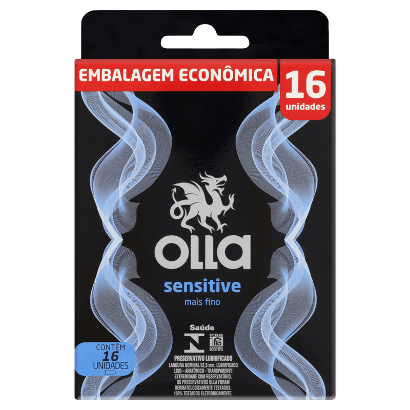 Pack Preservativo Masculino Lubrificado Sensitive Olla Caixa 16 Unidades Embalagem Econômica
