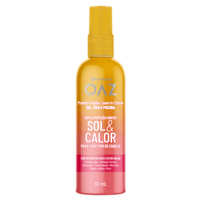O Leave-In Protetor Capilar OAZ Sol & Calor Creme 60ml é indicado para todos os tipos de cabelo, especialmente os expostos ao sol, mar e piscina. Com extrato de coco e filtro solar, oferece dupla proteção contra os danos causados pelo sol e calor, além de hidratar e nutrir os fios, mantendo-os macios e brilhantes.