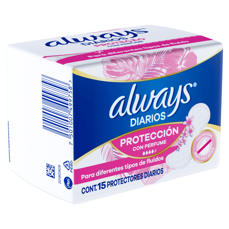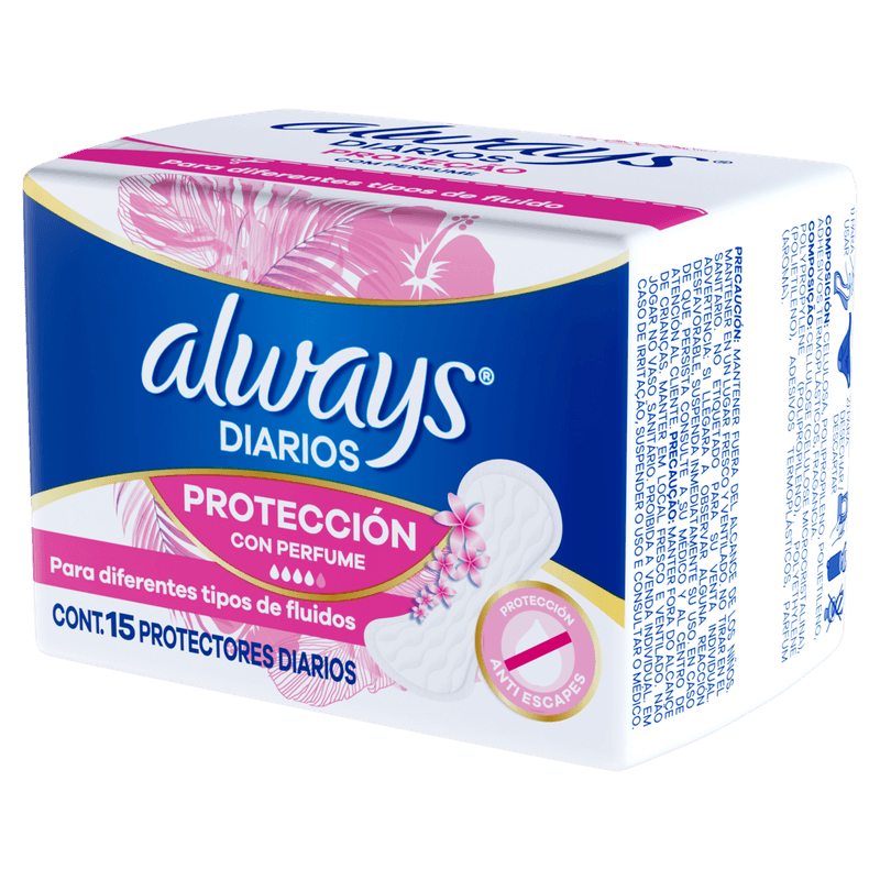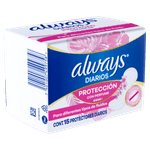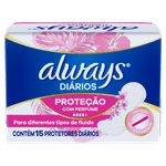 Os Protetores Diários Always Regular são anatômicos e com cobertura suave, tipo algodão. Contém fibras super Absorventes que retêm a umidade natural do corpo para que a mulher se sinta mais seca e limpa todos os dias. Um adesivo de extremo a extremo ajuda a manter o protetor seguro em seu lugar.