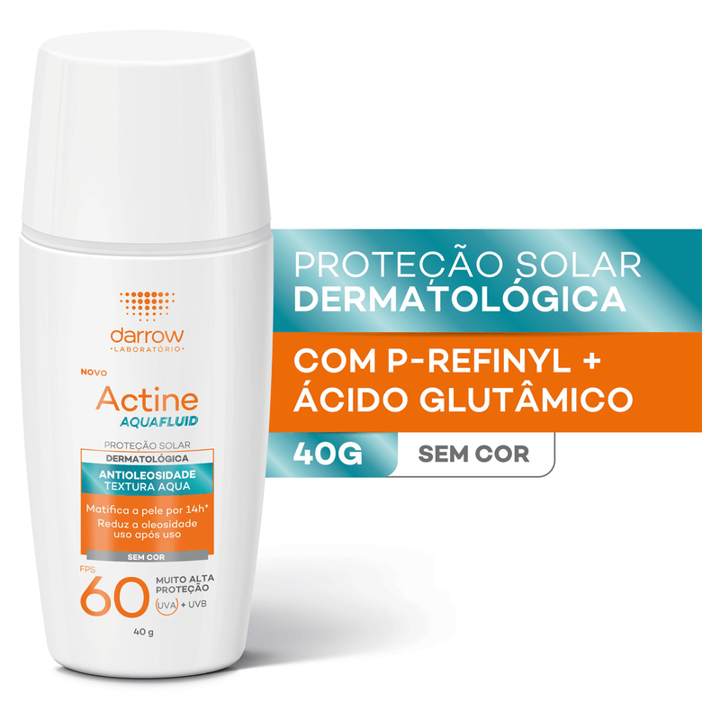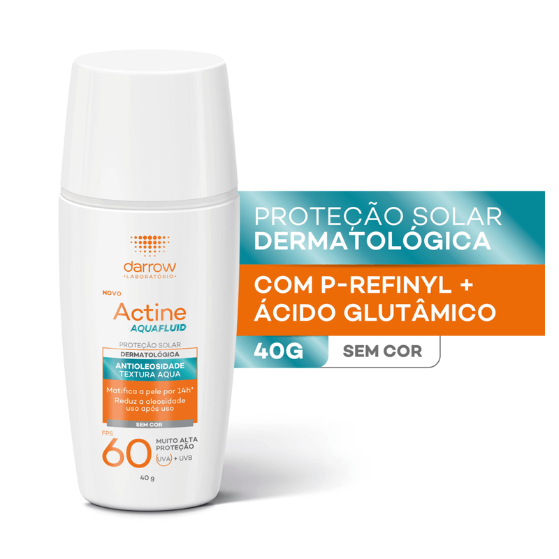 Actine Aquafluid Protetor Solar FPS 60 é uma fórmula especialmente desenvolvida para o cuidado da pele oleosa a acneica. Possui alta fotoproteção UVA/UVB, textura fluida de absorção imediata e toque seco. Seu complexo único de ativos - P-Refynil e Ácido Flutâmico - age profundamente e trata a oleosidade desde a origem. Hipoalergênico e não comedogênico. Produto não testado em animais. Actine, a linha expert em pele oleosa, mais prescrita pelos dermatologistas, possui um portfólio completo de produtos desenvolvidos especialmente para pele latina, a mantendo limpa, hidratada, protegida e sem o aspecto brilhante todos os dias.