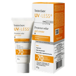 O Protetor Solar Facial Gel-Creme Toque Seco FPS 70 UV-Less da Theraskin oferece alta proteção contra os danos causados pela radiação solar UV, com FPS 70 e UVA 30. Sua fórmula em gel-creme leve e de rápida absorção proporciona toque seco, ideal para peles brasileiras, graças à tecnologia One Tone System que uniformiza o tom da pele. Resistente à água e ao suor, é perfeito para quem busca proteção eficaz sem sensação oleosa, prevenindo o fotoenvelhecimento e mantendo a pele saudável.