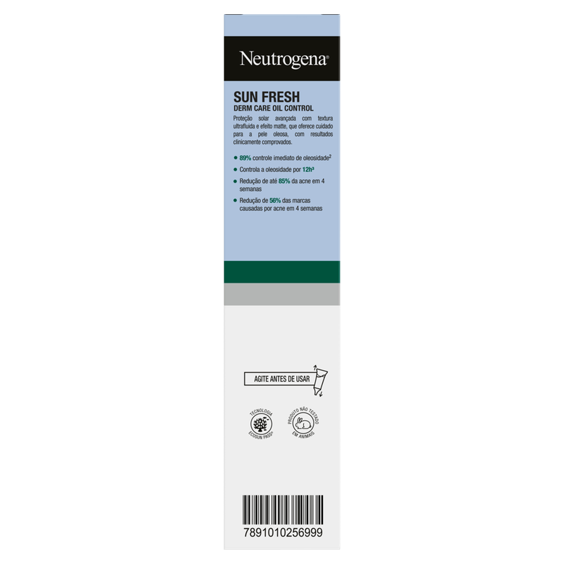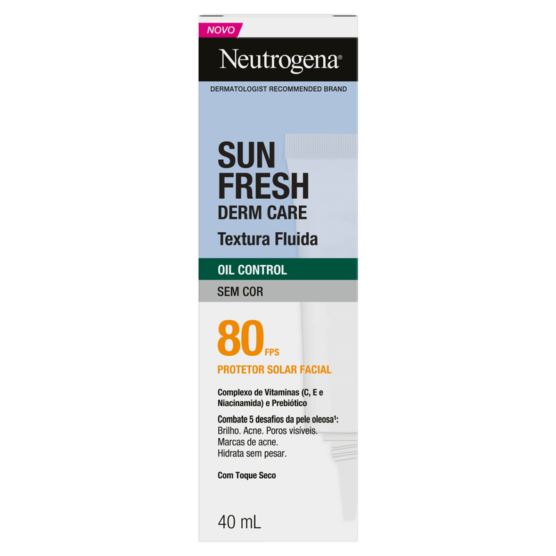 O Protetor Solar Neutrogena Sun Fresh Derm Care Oil Control FPS 80 foi desenvolvido especialmente para peles oleosas e acneicas. Com textura ultra fluida, toque seco e efeito matte por até 12 horas, ele combate os cinco principais desafios da pele oleosa: controle do brilho, prevenção da acne, redução de poros, diminuição de marcas de acne e hidratação leve.