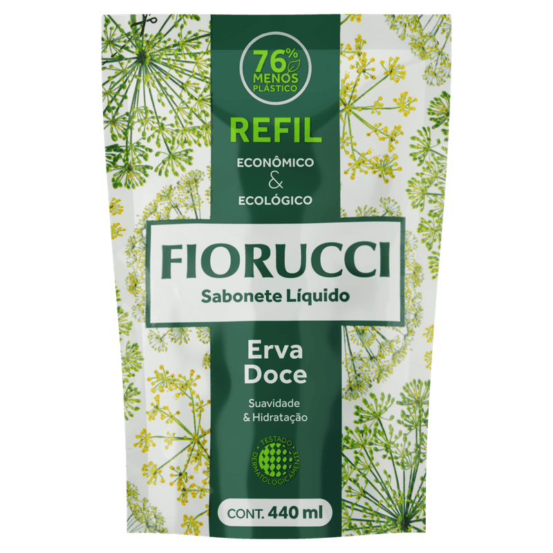 O Sabonete Líquido Fiorucci Erva-Doce é enriquecido com extrato de Erva-Doce, que auxilia na hidratação e proteção da epiderme. Possui pH fisiológico, que limpa sem agredir a sua pele, proporcionando uma agradável sensação de frescor e maciez. Com embalagem prática e econômica de 440ml, este produto é indicado para uso nas mãos e no corpo. Dermatologicamente testado.
