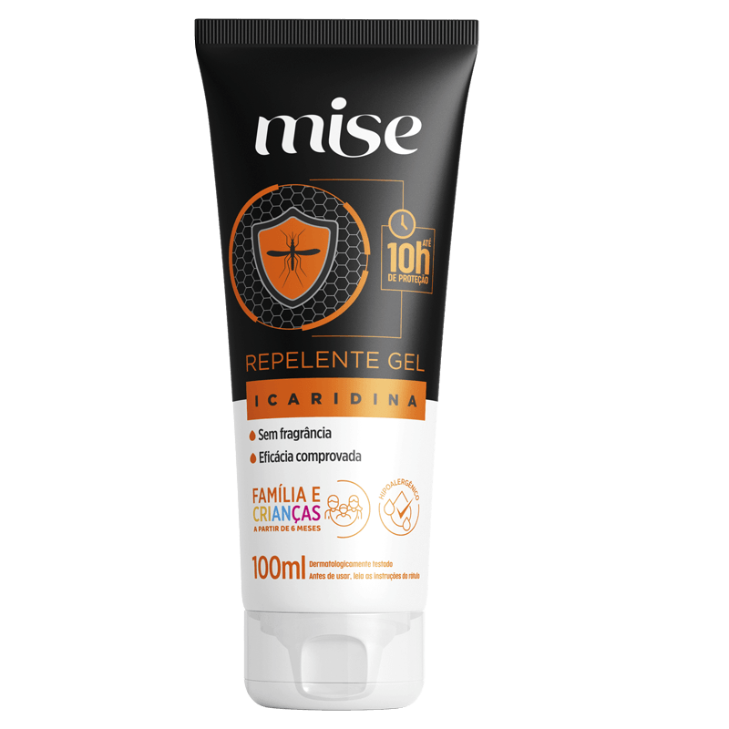 Repelente em gel Mise, a base de Icaridina, garante 10 horas de proteção contra as picadas do Aedes Aegypti, Anopheles Aquasalis e Culex Quinquefasciatus.