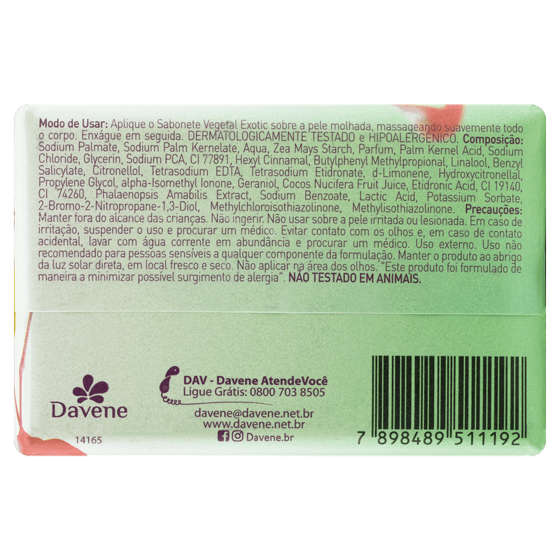 Sabonete Barra Vegetal Caribbean Orquídea com Água de Coco Davene Exotic Envoltório 170g