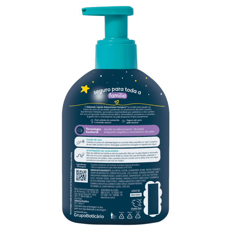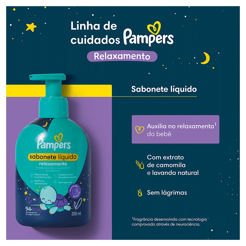 Sabonete Infantil Líquido com Extrato de Camomila e Lavanda Natural da Cabeça aos Pés Pampers Relaxamento Frasco 200ml Pump