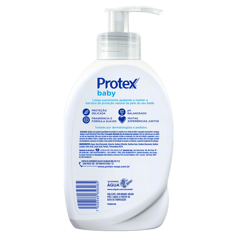 O Sabonete Líquido para bebês Protex Baby Proteção Delicada oferece proteção suave e delicada para o seu bebê da cabeça aos pés. Sua fórmula limpa suavemente e ajuda a manter a barreira natural de proteção da pele do bebê. O sabonete líquido é perfeito para o banho do seu bebê. Mantém a pele saudável e protegida. Testado por dermatologistas e pediatras.
