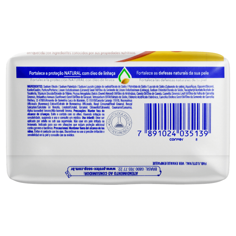 Protex Nutri Protect Vitamina E oferece proteção antibacteriana natural com óleo de linhaça e elimina 99,9% das bactérias, garantindo proteção por até 12 horas.