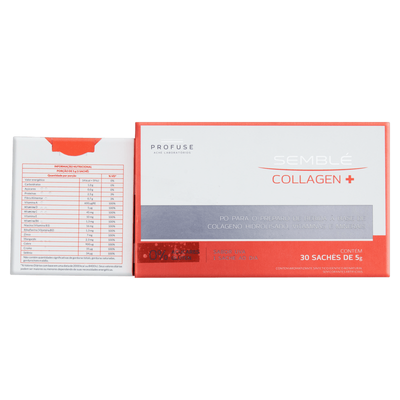 O Semblé Collagen Ultra da Profuse é um suplemento alimentar em pó com colágeno hidrolisado Verisol®, peptídeos bioativos, silício orgânico Ortosil®, vitamina C e manganês. Ideal para quem busca promover firmeza, elasticidade e hidratação da pele, além de fortalecer cabelos, unhas, ossos e articulações. Livre de açúcares, glúten, sabor e cheiro, é fácil de diluir e integrar à rotina diária de cuidados com a saúde e beleza.