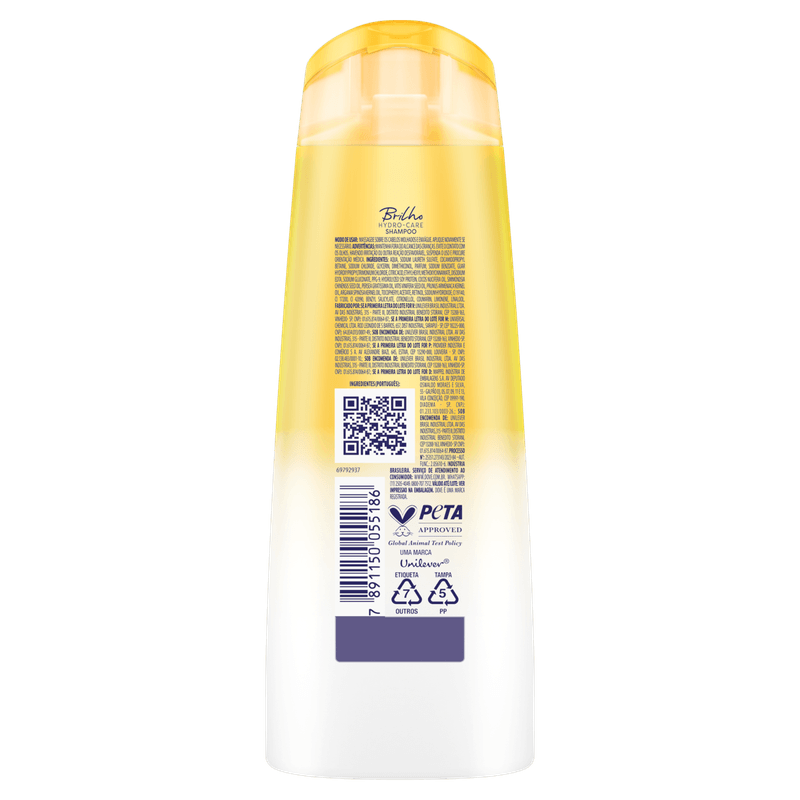 Composição: Aqua, sodium laureth sulfate, cocamidopropyl betaine, sodium chloride, glycerin, dimethiconol, parfum, sodium benzoate, guar hydroxypropyltrimonium chloride, citric acid, ethylhexyl methoxycinnamate, disodium EDTA, sodium gluconate, PPG-9, hydrolyzed soy protein, cocos nucifera oil, simmondsia chinensis seed oil, persea gratissima oil, vitis vinifera seed oil, prunus armeniaca kernel oil, argania spinosa kernel oil, tocopheryl acetate, retinol, sodium hydroxide, CI 19140, CI 17200, CI 42090, benzyl salicylate, citronellol, coumarin, limonene, linalool.